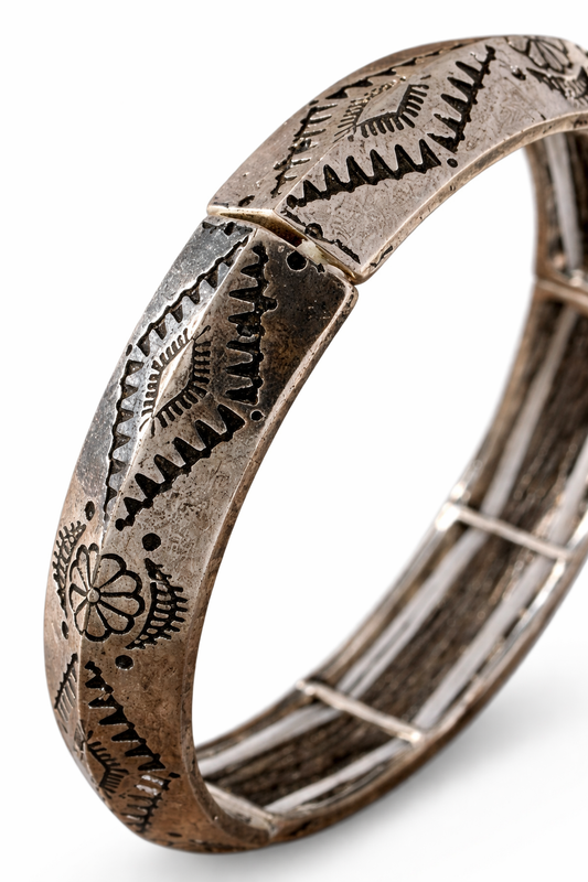 Canyon Line Stretch Bracelet Engraved Western Silver Panel Cuff