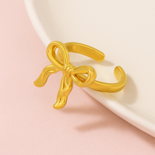 Topped Off With A Bow Coquette Ring Adjustable Size