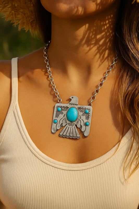 Prairie Starburst Necklace – Western Concho Statement with Faux Turquoise Accents