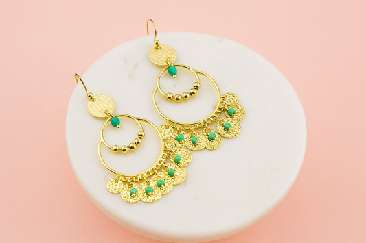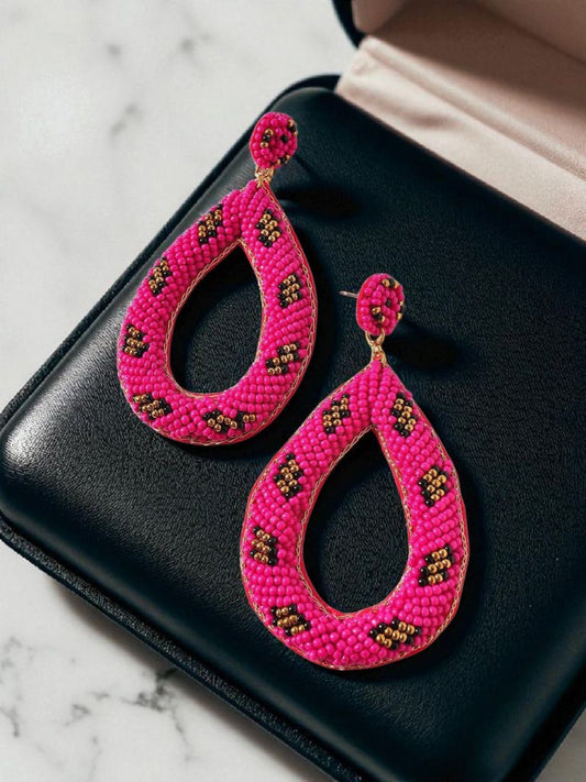 Red Glitter Fire Show Beaded Hoop Earrings in Red