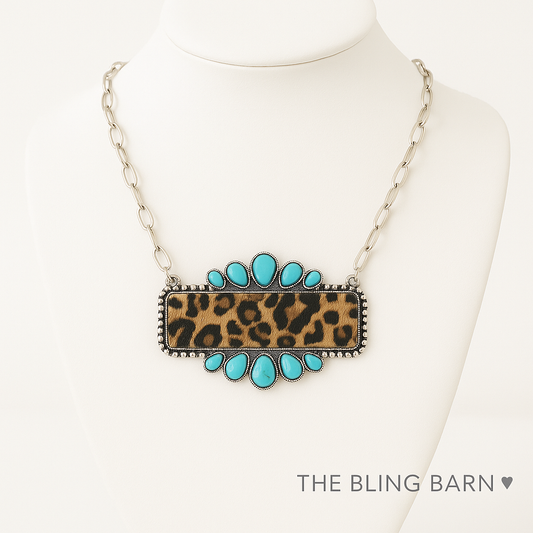 Sunset Standoff Necklace β Turquoise & Leopard Western Statement Piece