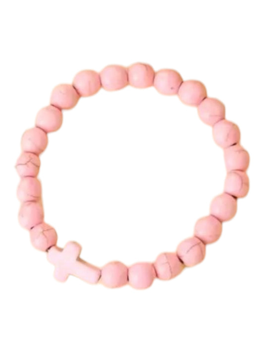 Crackled Stone Stretch Cross Bracelets in Pink or Black