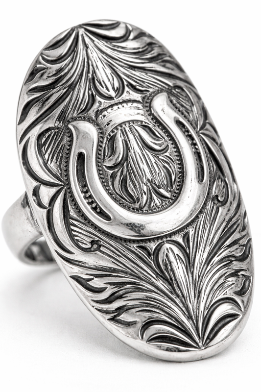 Lucky Spur Western Horseshoe Statement Ring