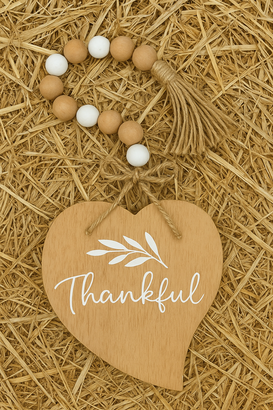 23 x 6 'Thankful' Wood Beaded Fall Decor