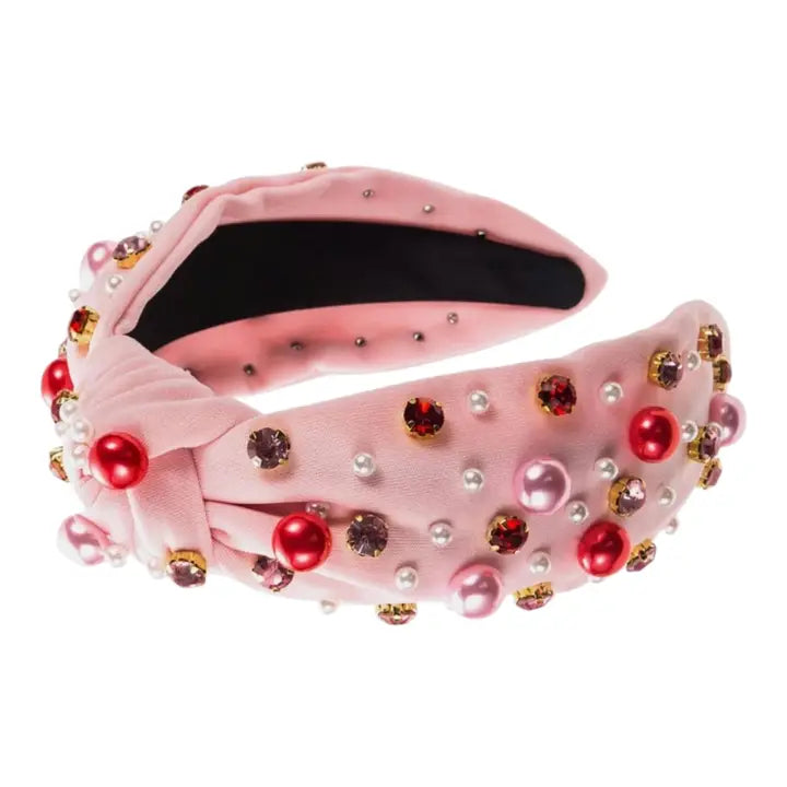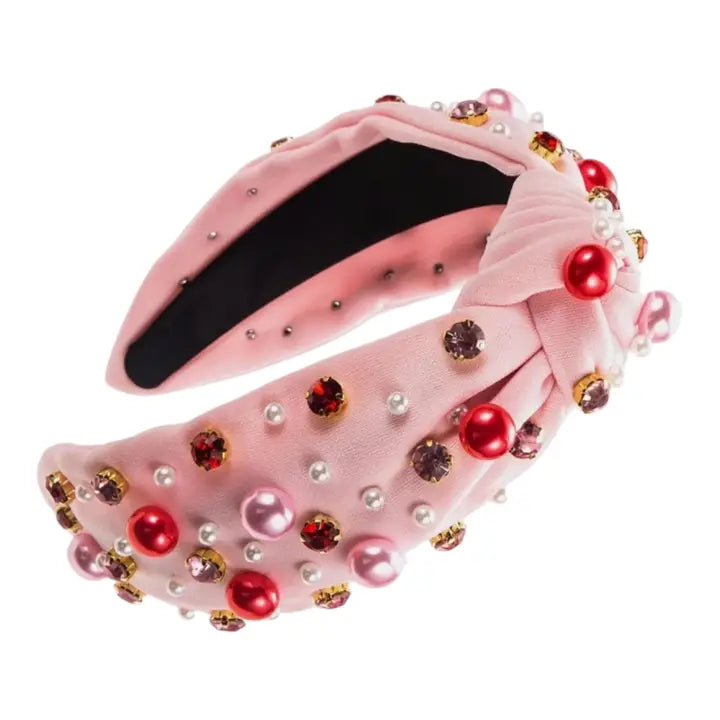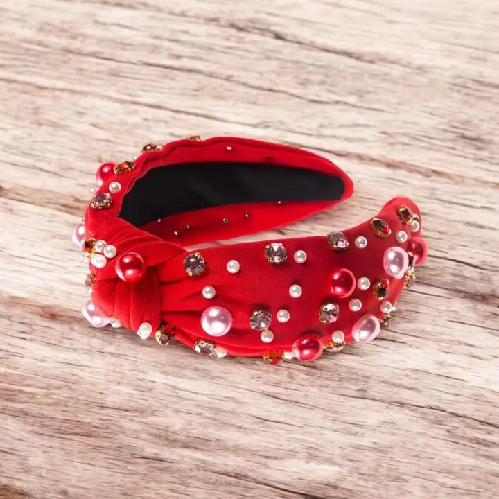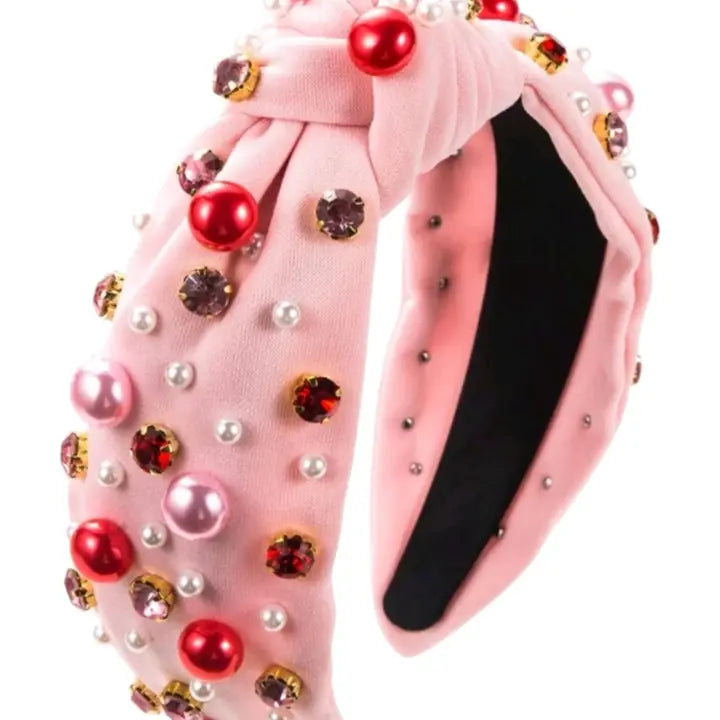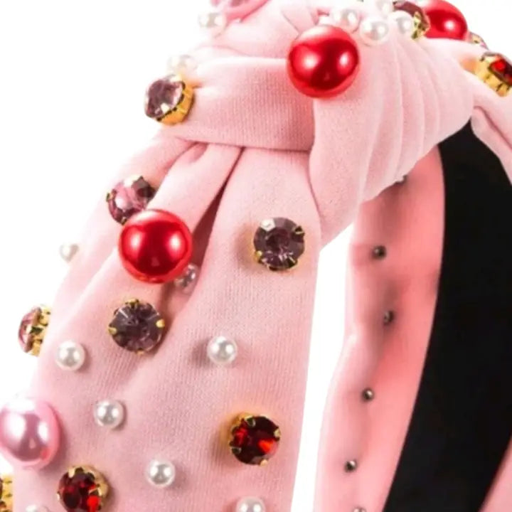 A Love Bomb Top Knot Faux Pearl and Rhinestone Headband