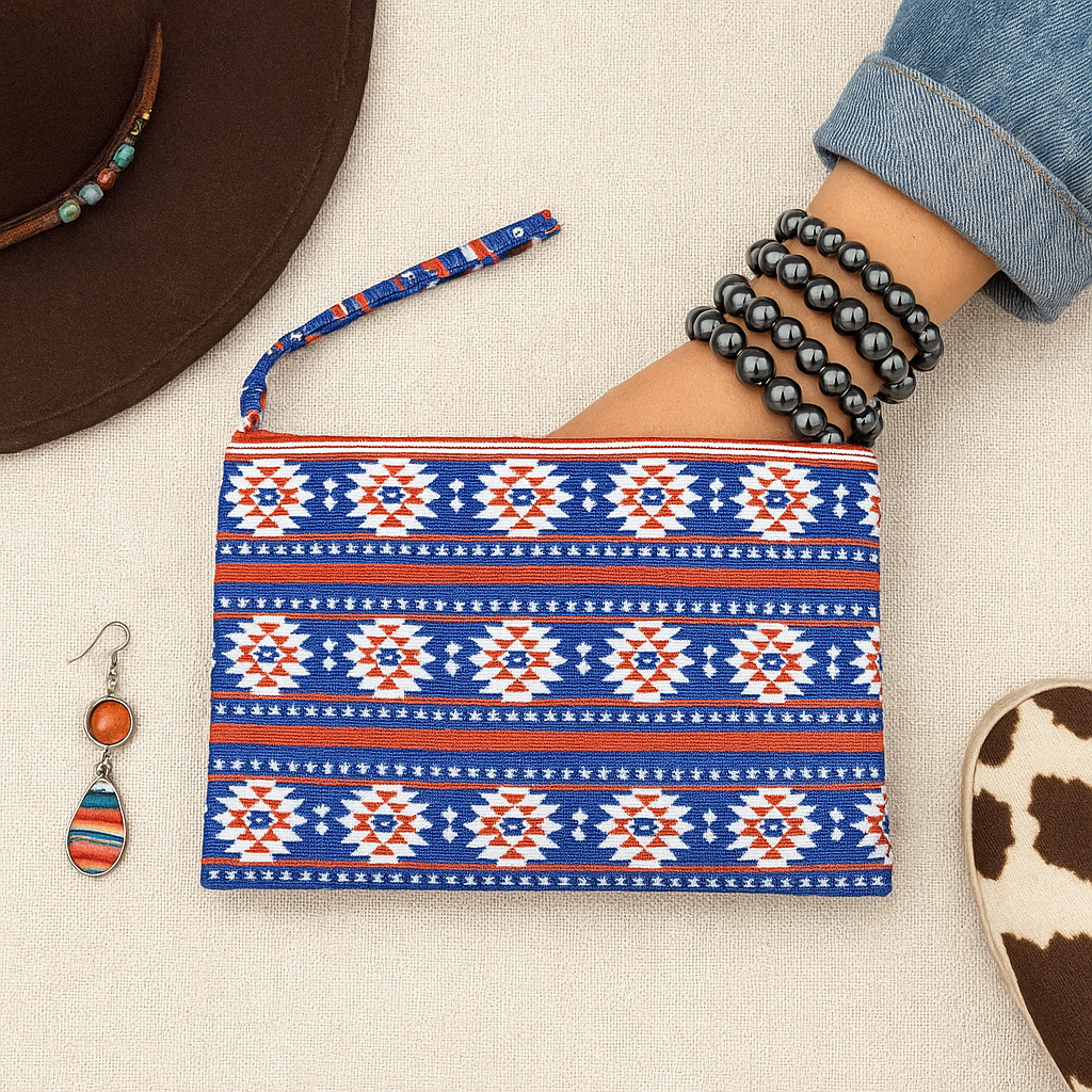 Aztec Print Pouch Bag Western Wristlet