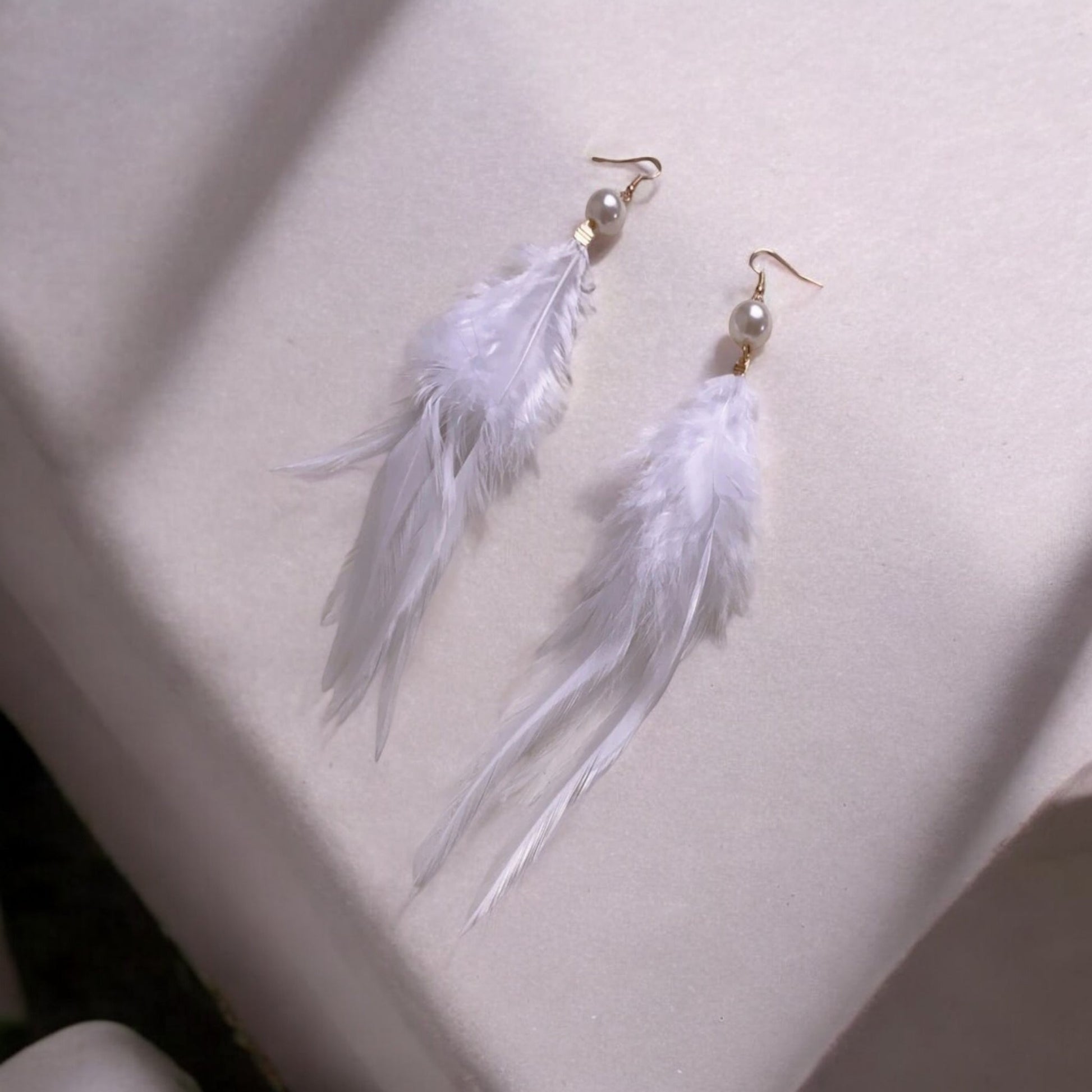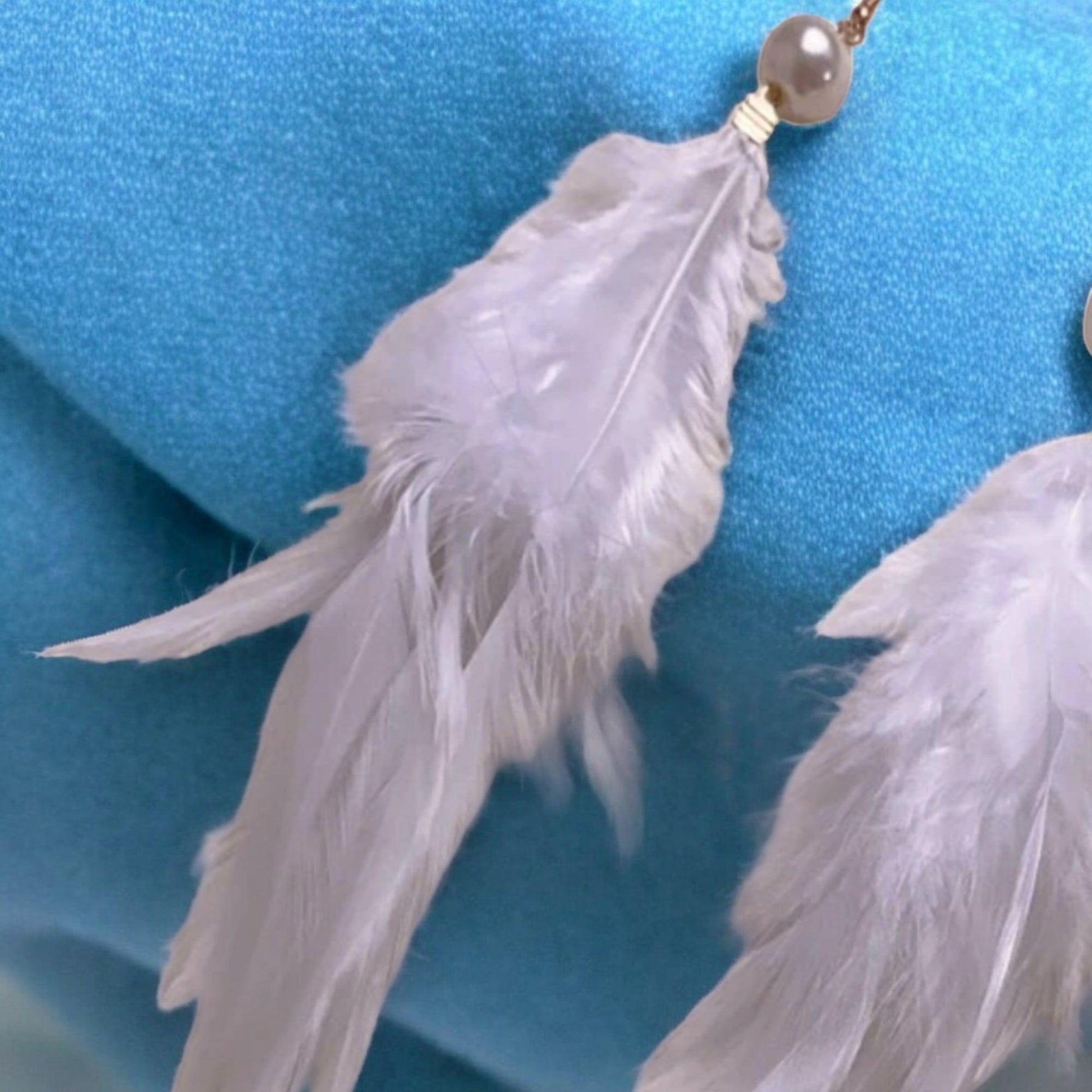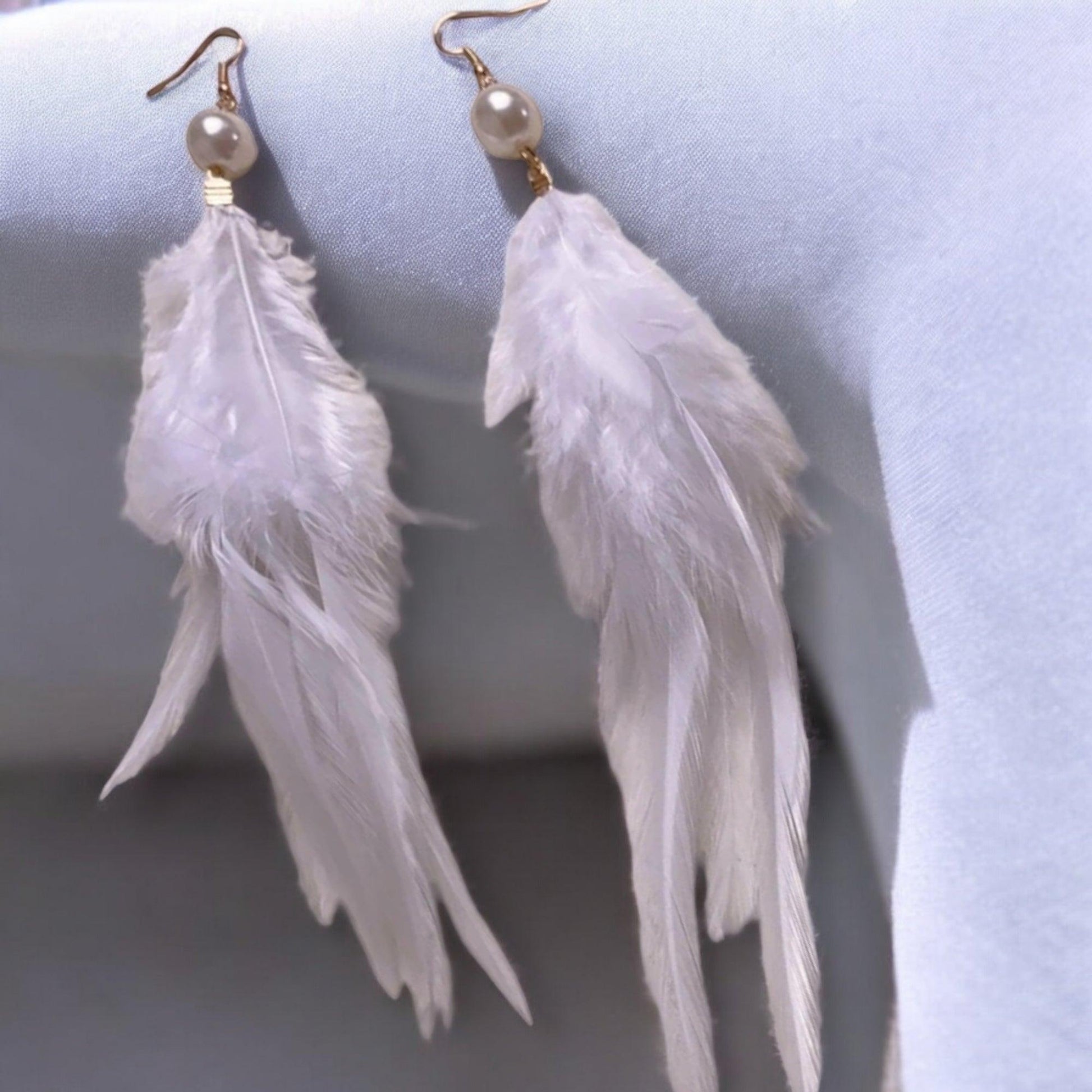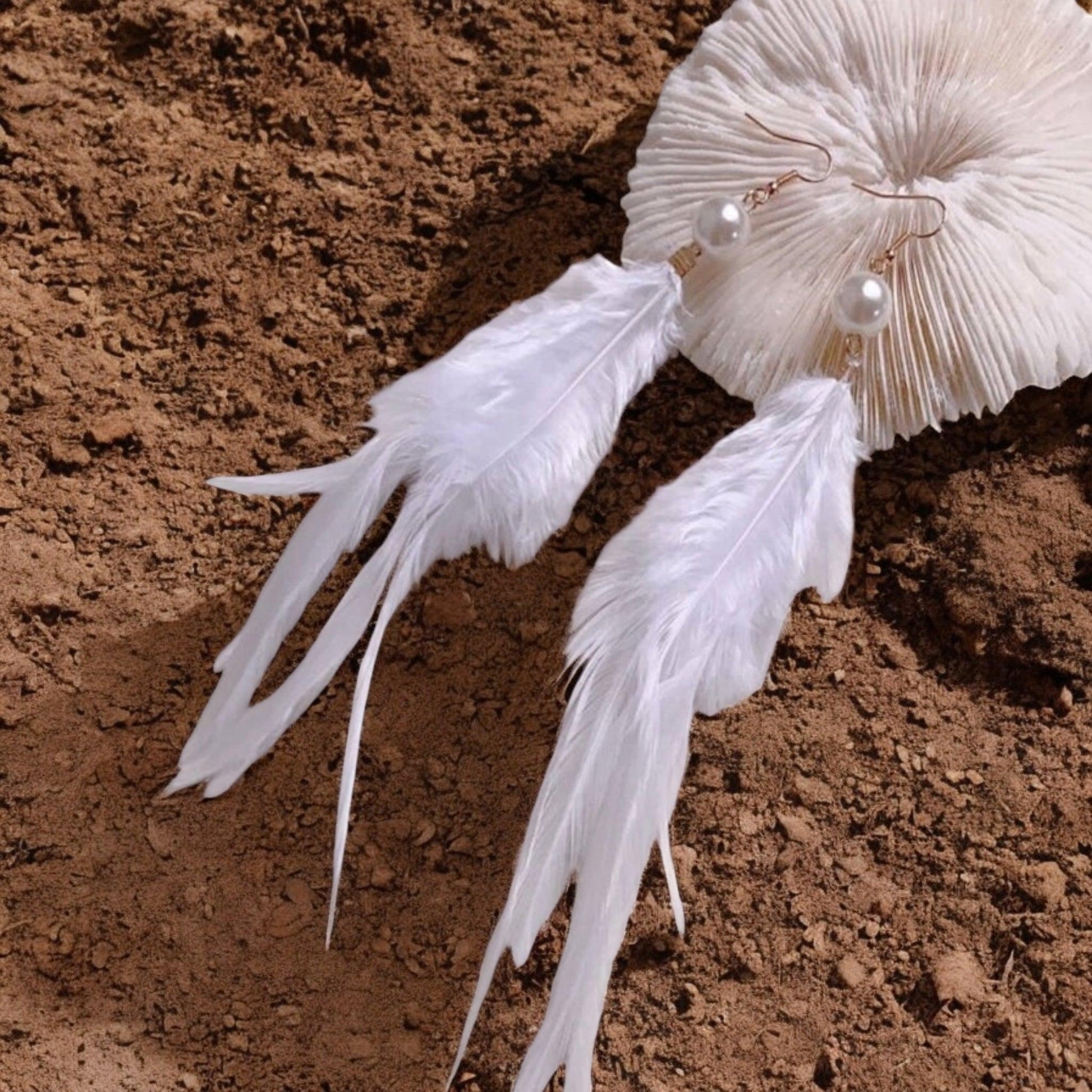 Into The Wind Faux Pearl and Feather Drop Earrings