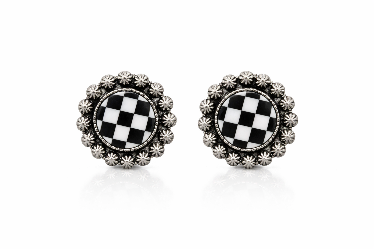 The Midnight Checkered Concho Stud Earrings are made to stand out—just like you.