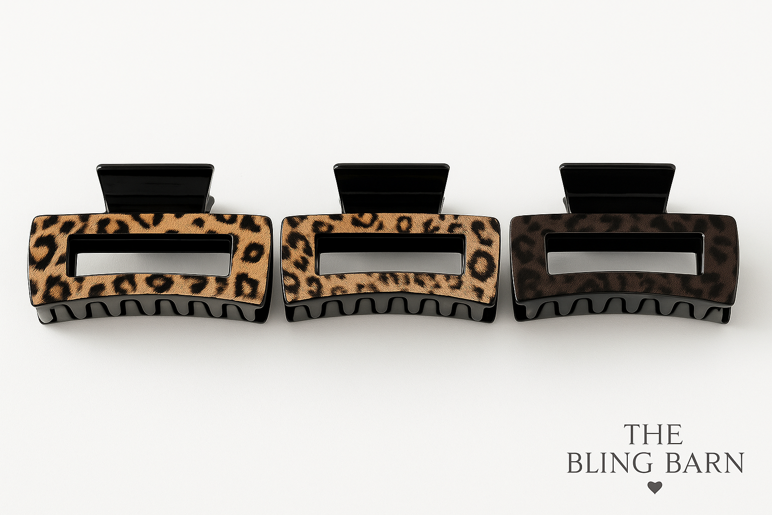 Perfect for half-up twists, messy buns, quick updos, or throwing your hair up between errands, this clip blends style, strength, and sass — everything The Bling Barn stands for. Available in three on-trend shades from light to deep leopard, each one adds the perfect pop of personality to your hairstyle.