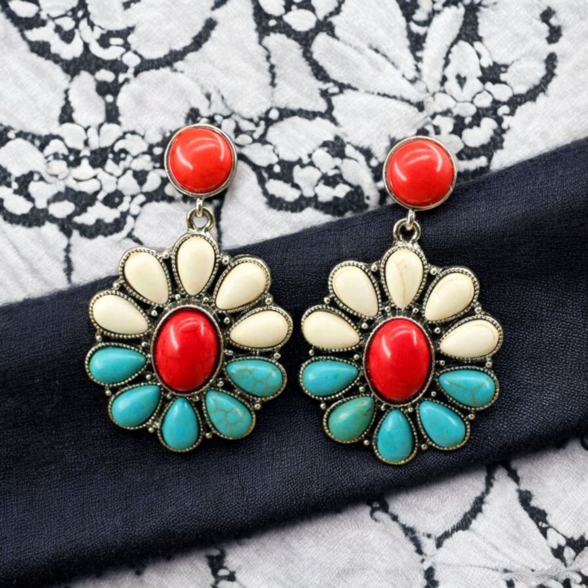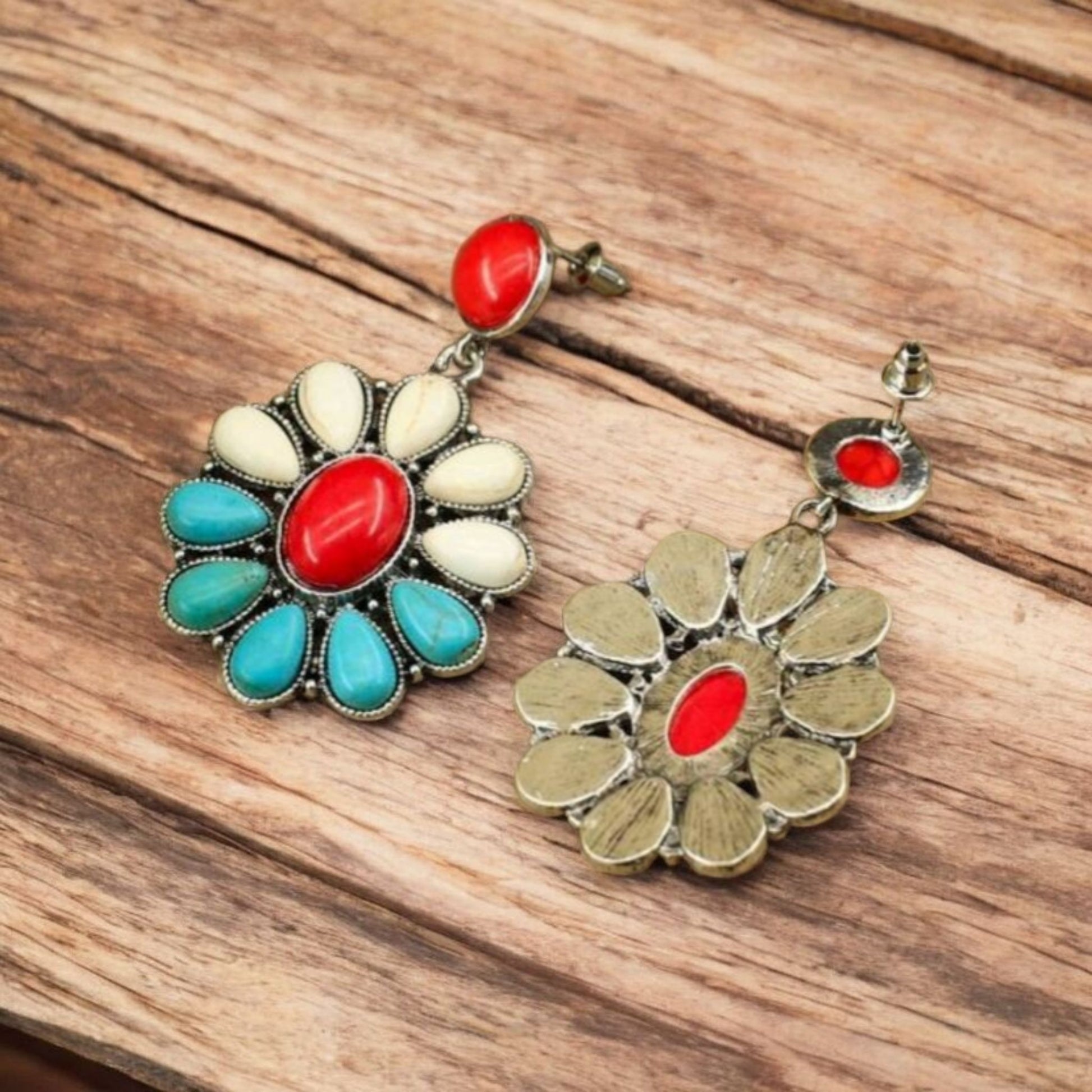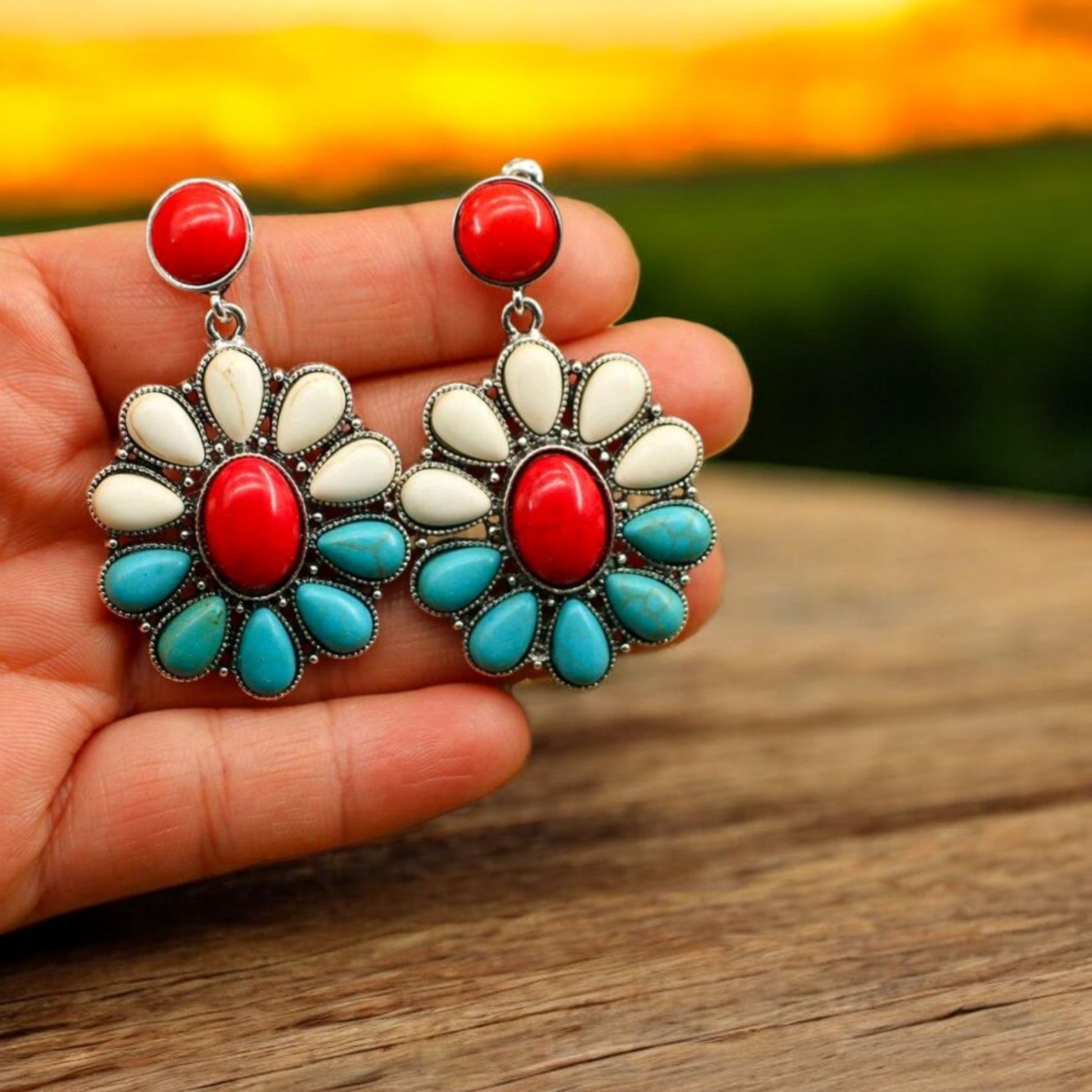 Elevate your style with our Stand For The Red, White & Blue Western Earrings. Add a touch of patriotism to your wardrobe with these elegant and exclusive earrings. Designed with intricate details, these earrings will make a statement and show your support for the red, white, and blue.