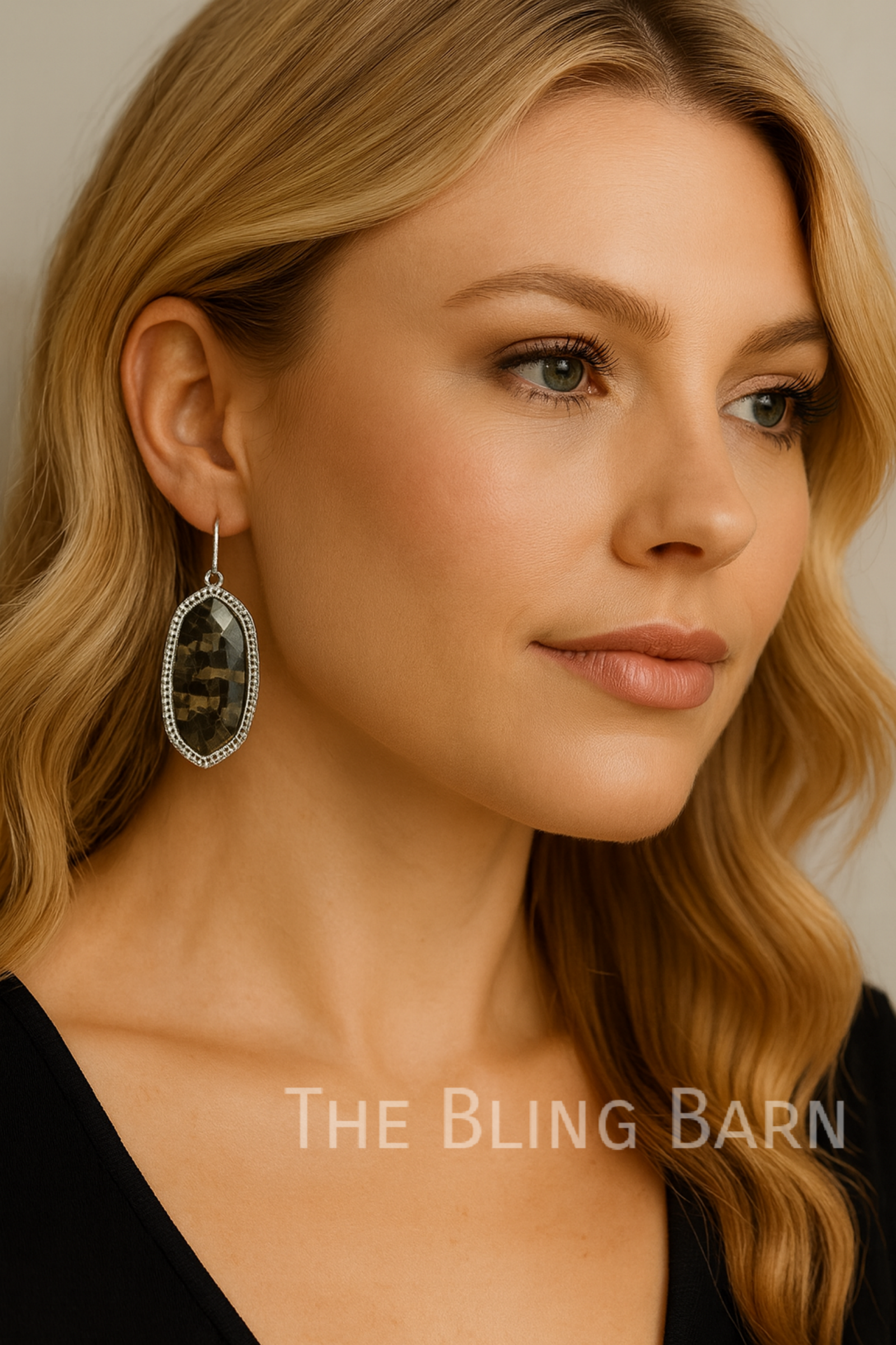Make a bold statement with our Western Terrain Camo Drop Earrings, designed for women who love a modern western edge with boutique polish. Featuring a faceted camouflage stone set in a textured rounded hexagon frame, these earrings blend rugged terrain tones with refined metallic detail for an effortlessly elevated look.