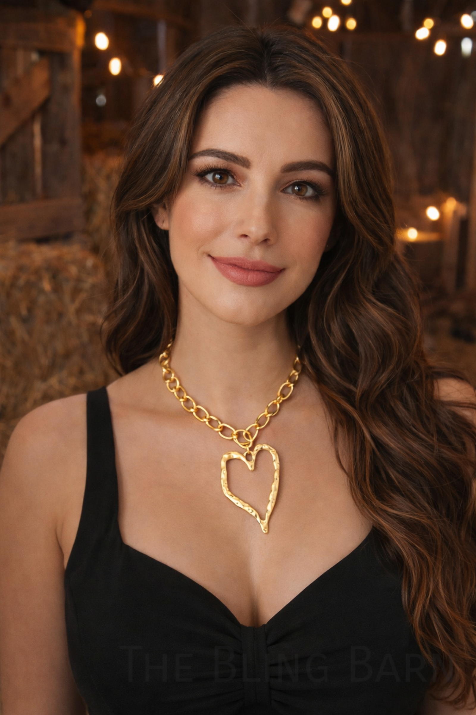 Crafted with a high-shine finish, the oversized heart pendant adds texture and dimension, catching the light with every movement. The adjustable chain allows for versatile styling — wear it as a statement choker or slightly longer for layered looks. Available in gold or silver, this piece transitions effortlessly from everyday outfits to elevated western glam.